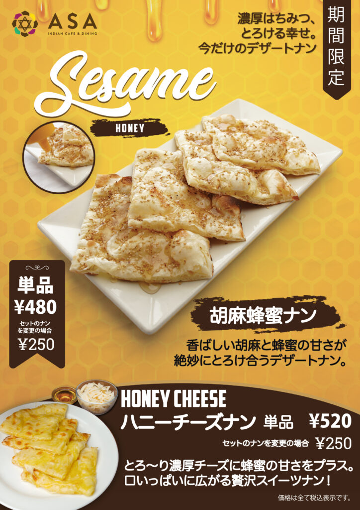 香ばしい胡麻と蜂蜜の甘さが絶妙にとろけ合うデザートナン