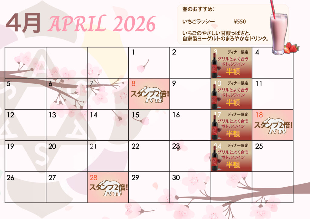 4月は毎週金曜ディナー限定(15時以降)で、